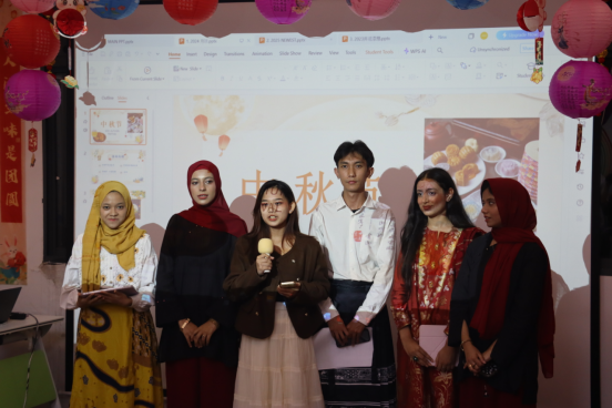 为让留学生深度感受中国传统节日文化魅力,增进中外文化交流,9月29日晚,必赢亚州242.,net在“求知”一站式学生社区举办“月满华裳,共绘中秋”留学生中秋文化体验活动,活动由来自印度尼西亚和巴基斯坦的留学生DILAN TONGLO TIKUPADANG(龙梓轩)和SALSABEEL(萨比尔)主持,50余名师生齐聚一堂,共赴中秋文化之约。